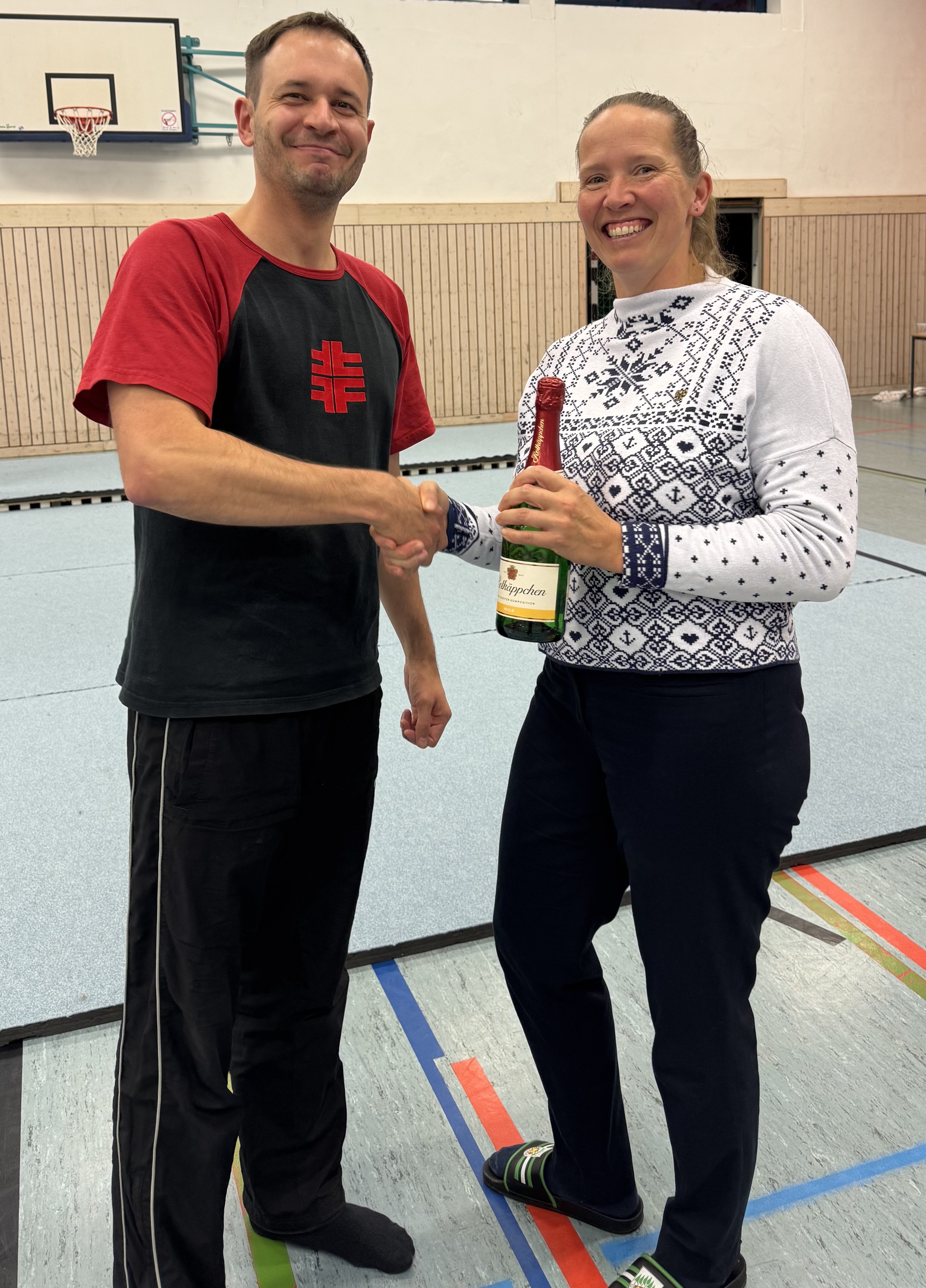Großen Applaus gab es dabei für Melanie Teege, welche als Kampfrichterin ihren 200 (!!!) Einsatz hatte. Das sind ganz grob gerechnet 1000 Stunden ehrenamtliche Arbeit, die sie alleine nur bei Wettkämpfen verbracht hat. Die ungezählten Stunden als Trainerin in der Turnhalle oder bei Lehrängen und sonstigen Veranstaltungen sind da noch gar nicht dazu gezählt. Vielen Dank Melanie für deinen Einsatz im Turnsport, deine Freude, Motivation und Drill :-) bei uns im Training und noch ganz lange Spaß dabei.
